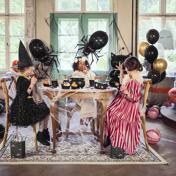 Meiltä juhlatilaasi somistamaan koristenauhat, hämähäkinseitit, ilmapallot, roikkuvat lepakot ja monet muut Halloween juhlakoristeet. Hankintojasi helpottamiseksi olemme luoneet sinulle muutamia teemoja valmiiksi. Blogistamme löydät lisää hyödyllisiä halloween koristelu ideoita, sekä helpon ohjeen Halloween-herkkuihin.