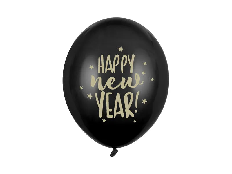 Ilmapallo Happy New Year - Musta, 6 kpl