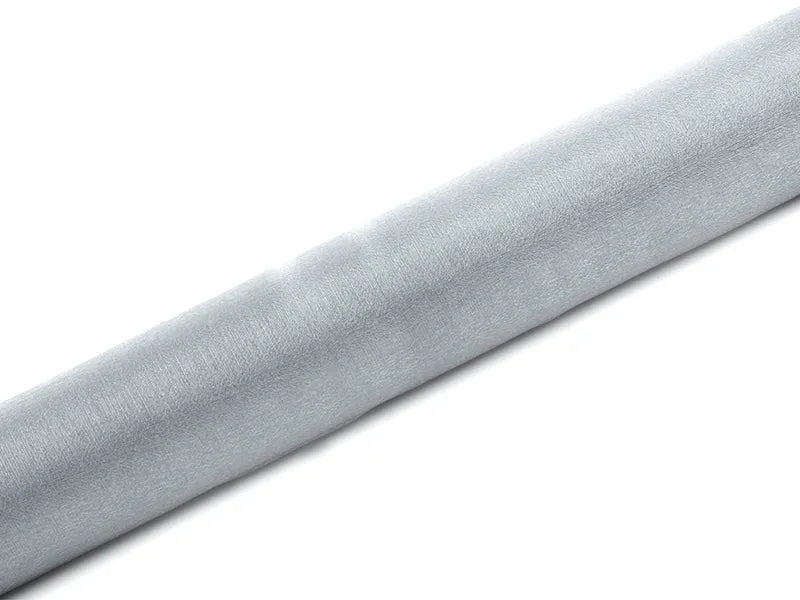 Todella upeasti hohtava vaalean hopeinen 36 cm leveä organzakaitaliina, jolla saat juhliesi teemavärien mukaista näyttävyyttä kattaukseen vaivattomasti.