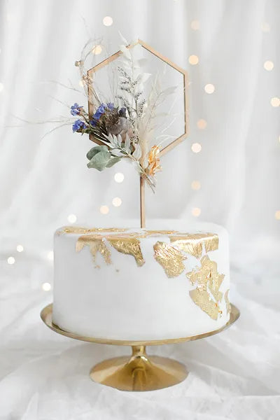 Kaunis vaaleasta puusta tehty kakkukoriste "Hexagon".