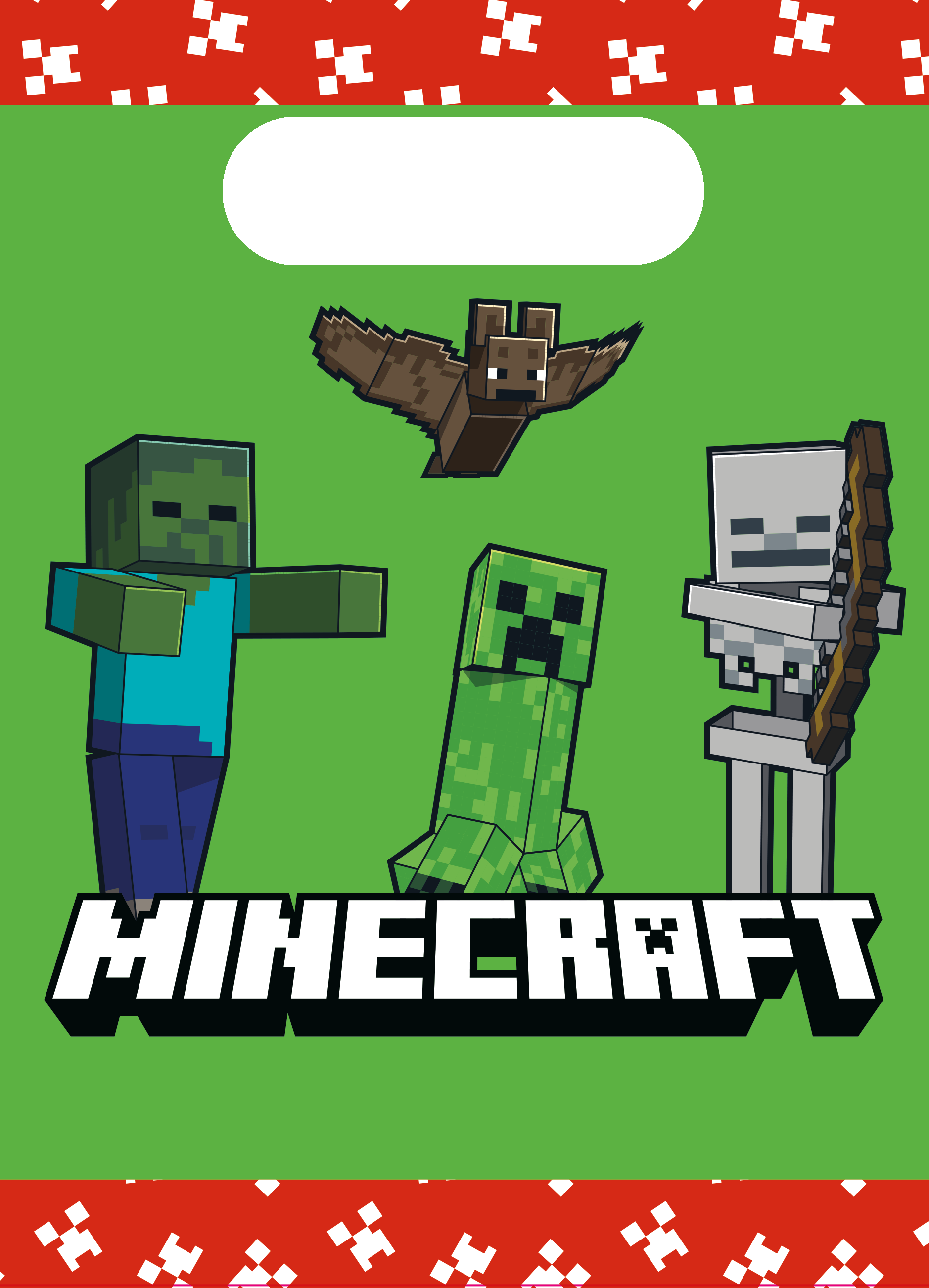 Minecraft paperilahjapussit lasten synttäreille tai muihin teemajuhliin.
