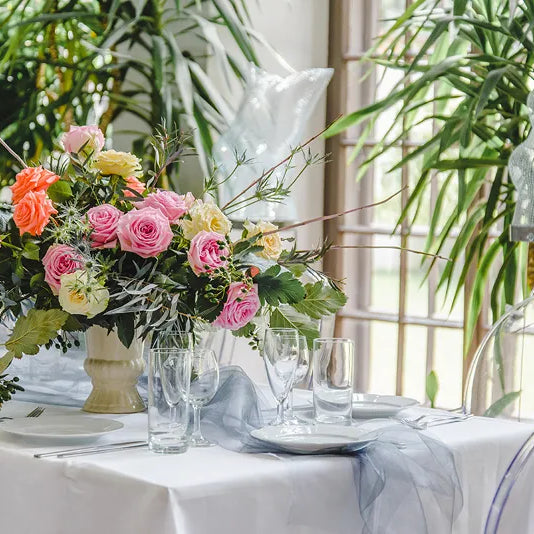 Valitse häiden väriteemaksi "something blue" ja luo ihanan raikas tunnelma yhdistelemällä hääkoristelussa sinisensävyjä, hopeaa ja valkoista. Poimi sinisestä värimaailmasta raikas jäänsininen, tyylikäs laivastonsininen ja tunnelmallinen tumma yönsininen oman makusi mukaan tai yhdistele kaikki tyylikkääksi kokonaisuudeksi. Ripaus hopeisia yksityiskohtia luo juhlavaa tunnelmaa ja valkoinen antaa upean pohjan, jolla muut värit saavat loistaa.