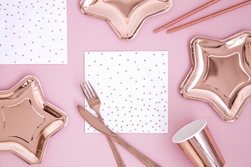 Upeat ruusukullan väriset tähdenmuotoiset kertakäyttölautaset teemajuhliin, synttäreille, polttareihin ja tyttöjen iltoihin!