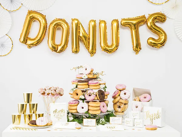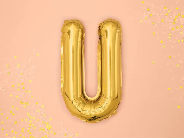 A gold-colored air-filled letter foil ball U for party decoration! Combine different letters to form the text you want.