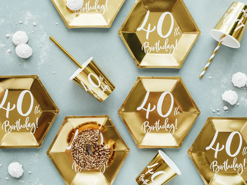Celebrate your forties in the glitter of gold and set the table with these wonderful cardboard plates.