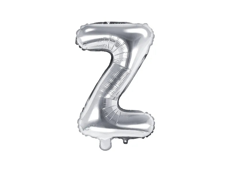 Hopeanvärinen ilmalla täytettävä kirjainfoliopallo Z juhlien somisteeksi!